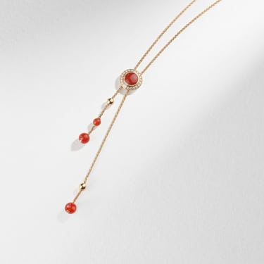 Possession时来运转系列坠饰,18K玫瑰金,镶饰20颗明亮式切割美钻(约0.35克拉)和4颗红玉髓(约6.80克拉)。