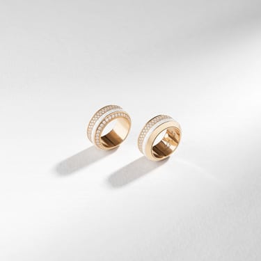 探索這款由玩樂巧思啟發的Possession女士旋轉指環,以玫瑰金打造,鑲飾白色陶瓷與明亮形切割圓形美鑽。一行接一行的珍貴寶石與大膽線條演繹無畏、優雅和現代氣息,令這款鑽石指環驚豔奪目。充滿趣味的旋轉圓環令人沉醉,於日常生活中時刻伴您展開非凡人生。明亮形切割圓形美鑽為這款陶瓷指環增添璀璨光芒,旋轉間華彩漫天,炫目迷人。這款充滿現代風格的玫瑰金鑽石指環飾以白色陶瓷。美輪美奐的現代傑作,散發優雅精緻的迷人氣息。