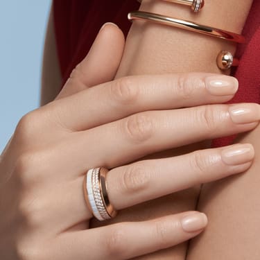 探索伯爵Possession玫瑰金雙圈手鐲,其上鑲飾明亮形切割圓形美鑽。伯爵Possession系列充滿趣味的新作,流麗而前衛的設計昇華經典手鐲。這款玫瑰金雙圈手鐲演繹伯爵Possession系列的獨有造型和曲線,同時保留系列的特色,兩端均飾有鋪鑲鑽石的旋轉圓環。這款雙圈手鐲採用靈活設計,修飾完美的圓角可帶來舒適的佩戴感,而迷人的玫瑰金則營造高雅細緻的外觀。細膩而奪目的設計,彰顯嶄新而流麗的格調。