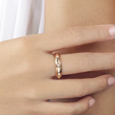 Possession指環繾綣纏繞於指間,並不只是一種格調。它擁有獨特的旋轉結構,圓環以簡約動態轉動不息,散發迷人氣息。指環中央設可自由轉動的玫瑰金活動圓環,鑲飾8顆代表幸運的圓形美鑽。