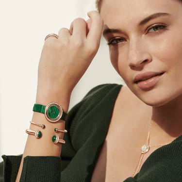 请注意,克拉重量、宝石数量和产品尺寸会因您所订购作品的尺寸而异。敬请与我们联系,获取详细信息。