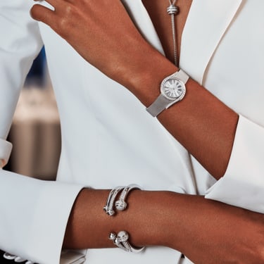 请注意,克拉重量、宝石数量和产品尺寸会因您所订购作品的尺寸而异。敬请与我们联系,获取详细信息。