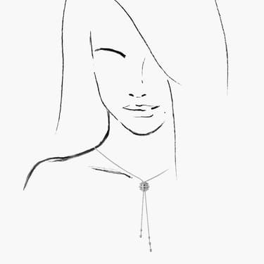 這款充滿玩味的垂飾,其中間飾有旋轉圈環,而項鏈更可隨意上下拉動。五個金球裝飾在項鏈末端翩翩起舞,不論是作為短垂飾或長垂飾,不論是以對稱或不對稱的方式佩戴,都盡展女性的大方韻味。