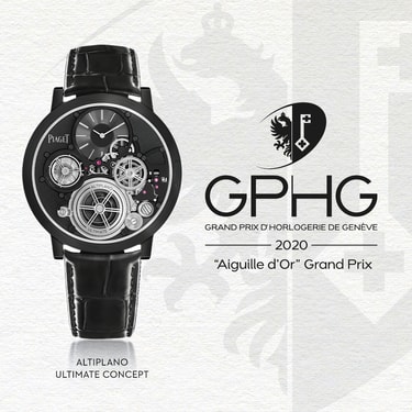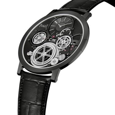 全黑超薄腕表。Altiplano Ultimate Concept系列腕表,900P-UC手动上链机芯,钴基合金表壳。这款非凡腕表重新定义制表规则,是四年苦心研发的结晶。Piaget伯爵致力于创造一款不受传统机芯技术限制的高级腕表,以精湛技术打破多层界限,将表壳与机芯融为一体。这一目标已经实现,同时拥有了五项全新专利。探索900P-UC超薄手动上链机芯,体验品牌多年费心研创的成果。奢华、时尚与强大。这款瑞士男士腕表巧妙融合钴基合金、黑色PVD涂层和黑色鳄鱼皮表带,是大胆男士的勇敢宣言。Altiplano至臻超薄系列Ultimate Concept机械腕表荣膺2020日内瓦高级钟表大赏(GPHG)“金指针”大奖(Aiguille d'Or)。此项颁发给优胜腕表的奖项,不仅表彰了Piaget伯爵的精彩创意和对超卓品质的精益求精,更是对品牌精湛工艺与专业知识的盛赞。