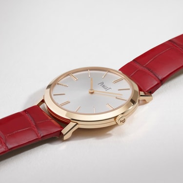 Altiplano至臻超薄系列自动女士高级腕表,35毫米玫瑰金表壳。超薄腕表搭载品牌501P自动上链机芯。含蓄内敛却不失奢华格调的女士腕表,为在生活中精益求精的您打造。这款自动高级腕表传承系列经典风姿,运用简约表壳和阳光放射状饰纹银色表盘打造无畏造型,搭配闪亮鳄鱼皮表带尽显华光。搭载501P超薄自动上链机芯,厚度仅为3.6毫米。纤薄造型结合雅致设计,高级腕表成就绚烂光辉。