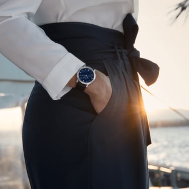 白金钻石超薄腕表。蓝色表盘。蓝色鳄鱼皮表带及镶钻针扣式表扣。这款女士钻石腕表将品牌的制表与珠宝两大工艺巧妙融合,以璀璨耀眼的长方形切割钻石,衬托标志性ALTIPLANO超薄系列的独特魅力。蓝色表盘上饰有金质时标,和4颗长方形钻石,搭配镶嵌长方形钻石表圈。这款36毫米的纤薄白金表壳,搭配镶嵌圆形美钻的表耳,搭载430P超薄手动上链机芯。编号并限量发行88枚。