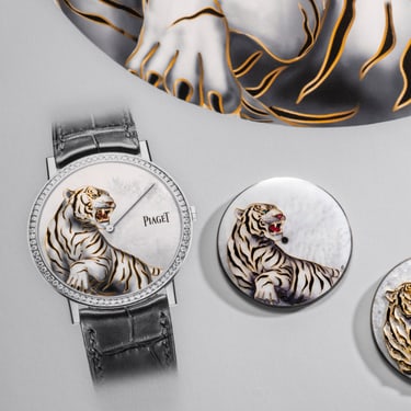 自2012年以来,Piaget伯爵便以Altiplano至臻超薄白金钻石腕表庆祝中国农历新年。十年荏苒,诚邀您探索这款限量发行38枚的虎年贺岁腕表。这款瑞士机械腕表以大明火掐丝珐琅精心打造,以专业工艺细致勾勒出动物栩栩如生的形象,咆哮猛虎跃然眼前。这款超薄高级腕表的表圈镶饰璀璨钻石,为特别时光洒下迷人华彩。这款白金钻石腕表魅力不凡,将自信、勇敢与充满魅力的猛虎演绎得活灵活现。