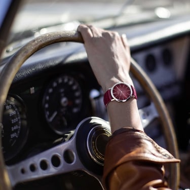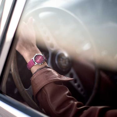 女士超薄白金腕表。粉红色表盘。粉红色鳄鱼皮表带。这款高级超薄腕表运用大胆色彩,表盘呈粉红色并饰以太阳放射状饰纹。抛光打磨超薄白金表壳直径为34毫米,简约优雅的金质时标和纤细的巴顿指针和谐搭配。这款腕表防水深度达3ATM,搭载430P超薄手动上链机芯,拥有中央小时、分钟显示功能。这款女士白金腕表专为Altiplano系列六十周年纪念推出,限量发行360枚,搭配粉红色鳄鱼皮表带及针扣。