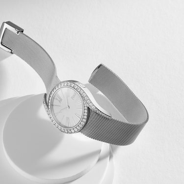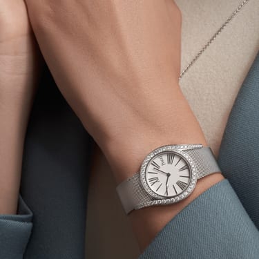 Limelight Gala系列白金钻石腕表,精致、个性和优雅,501P自动上链机芯。您会不由自主地被这款自动上链腕表的奢华光辉吸引。机械机芯腕表搭配蓝宝石水晶底盖,光线映衬于白色表盘,散发迷人魅力。Limelight Gala系列标志性修长表耳温柔环绕表盘。这款女士高级腕表表壳镶饰渐进式钻石,优雅光芒四溢。搭配米兰网织表链,以流畅舒适的设计展现Piaget伯爵精湛的金质工艺。同这款白金钻石腕表一起,拥抱魅力优雅,绽放光芒。