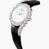 女士白金钻石腕表。白色珍珠母贝表盘。黑色鳄鱼皮表带和镶钻表扣。这款瑞士女士镶钻腕表全新诠释一款1973年诞生的时计杰作。32毫米白金圆形表壳优雅柔美,侧面由手工细腻雕刻装饰,延伸至舒适贴服手腕的一对拱形表耳。华美表圈镶嵌渐变圆形钻石,凸显这款优雅女士腕表的曼妙曲线。白色珍珠母贝表盘搭配纤细的巴顿指针,兼具古典气质和现代风情。品牌工匠大师运用全新“镂空”镶嵌工艺,隐蔽装饰较大的珍贵宝石。