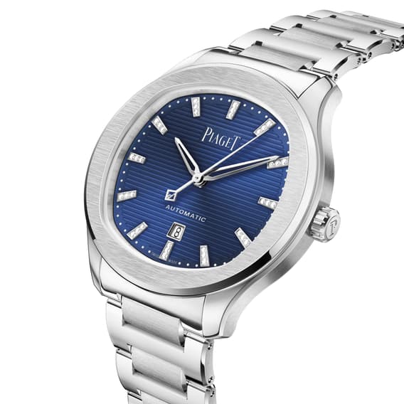 探索直径36毫米的Piaget伯爵Polo Date精钢奢华腕表,欣赏这款女士腕表的优雅气息与运动美学。Piaget伯爵经典元素在这款Piaget伯爵Polo腕表中融汇交织。Piaget伯爵经典蓝色调、精钢表链与该系列的标志性枕形表盘,均为这款瑞士女士自动上链腕表增色添彩。这款Piaget伯爵Polo系列女士腕表以镶钻时标彰显大胆前卫气息,优雅时尚,将该系列的迷人魅力与典范设计体现得淋漓尽致。这款配备可替换式表链的精钢腕表为直径36毫米的女士自动上链表款,可谓Piaget伯爵品牌历史上的全新精彩篇章。