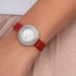 女士白金腕表,镶饰钻石。银色镶钻表盘。旋转表圈。红色鳄鱼皮可更换表带。这款高级女士腕表以Possession系列的标志性旋转圆环为灵感,巧妙搭配白金材质与璀璨美钻,彰显标志性风格。旋转表圈镶饰一圈耀眼钻石,华丽映衬点缀镶钻圆点时标的银色表盘。这款腕表搭配针扣红色鳄鱼皮表带,直径为29毫米的圆润白金镶钻表壳设有可更换系统,可自由随心地变换风格。