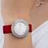 女士白金腕表,镶饰钻石。珍珠母贝镶钻表盘。旋转表圈。红色鳄鱼皮可更换表带。这款高级女士腕表以Possession系列的标志性旋转圆环为灵感,巧妙搭配白金材质与璀璨美钻,彰显标志性风格。旋转表圈密镶耀眼钻石,华美映衬点缀镶钻圆点时标的珍珠母贝表盘。这款腕表搭配针扣红色鳄鱼皮表带,直径为34毫米的圆润白金镶钻表壳设有可更换系统,可自由随心地变换风格。