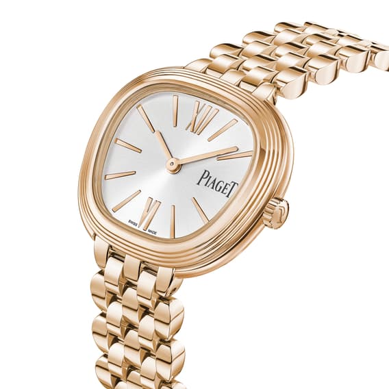 Sixtie鎏金悦影系列以伯爵的大胆和艺术性重新诠释了梯形腕表。灵感源自1969年的Swinging Sautoirs,这款精钢和黄金腕表的流畅设计在梯形、方形和枕形之间转换——这是伯爵对多元形态的自由表达。