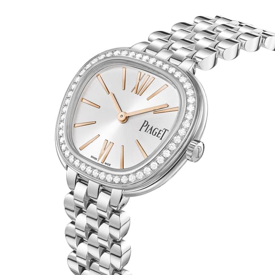 Sixtie鎏金悦影系列以伯爵的大胆和艺术性重新诠释了梯形腕表。灵感源自1969年的Swinging Sautoirs,这款精钢和黄金腕表的流畅设计在梯形、方形和枕形之间转换——这是伯爵对多元形态的自由表达。