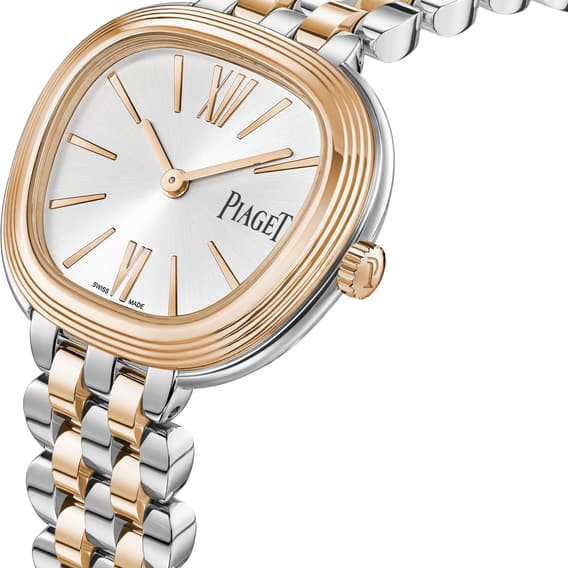 Sixtie鎏金悦影系列以伯爵的大胆和艺术性重新诠释了梯形腕表。灵感源自1969年的Swinging Sautoirs,这款精钢和黄金腕表的流畅设计在梯形、方形和枕形之间转换——这是伯爵对多元形态的自由表达。